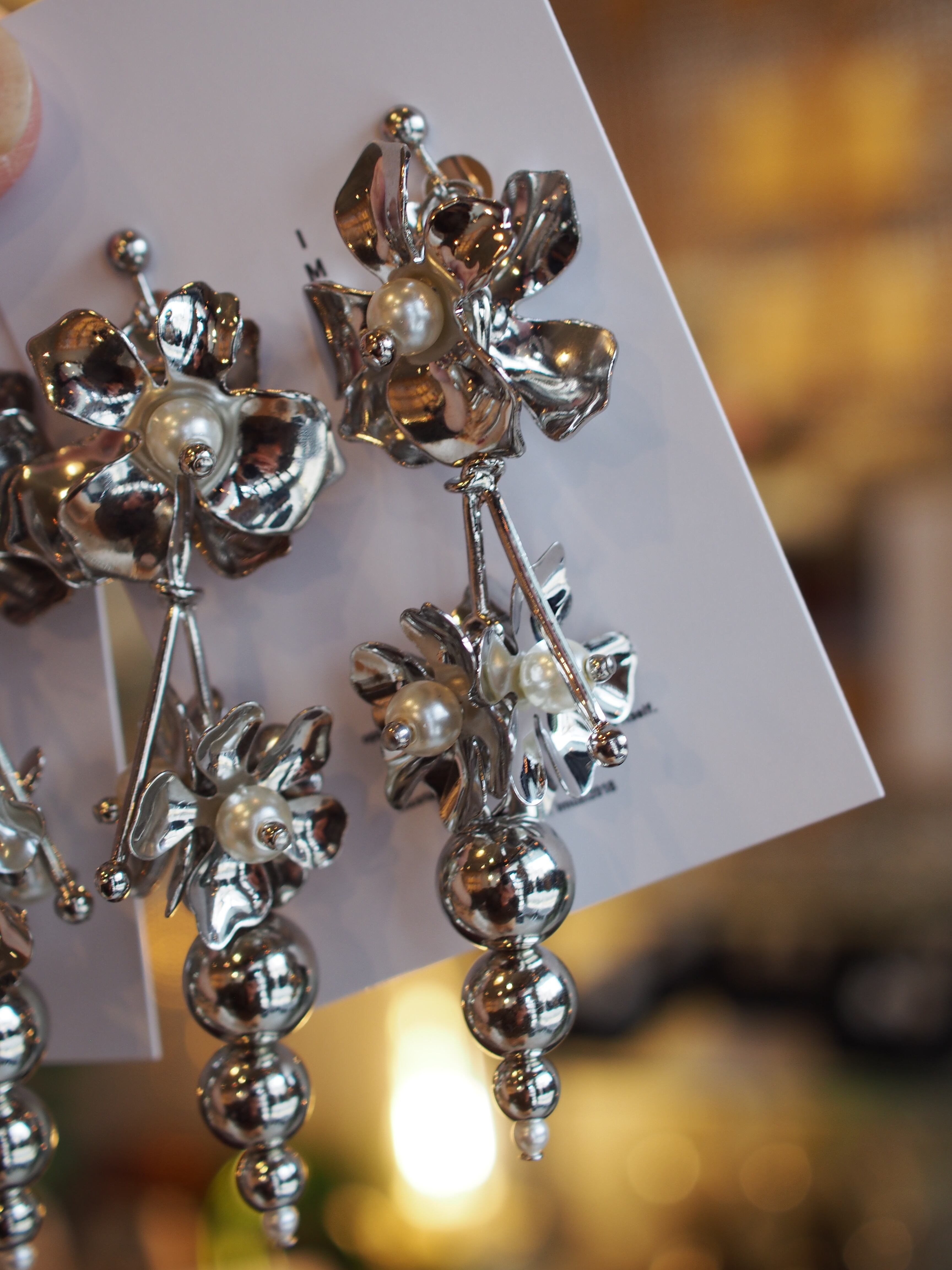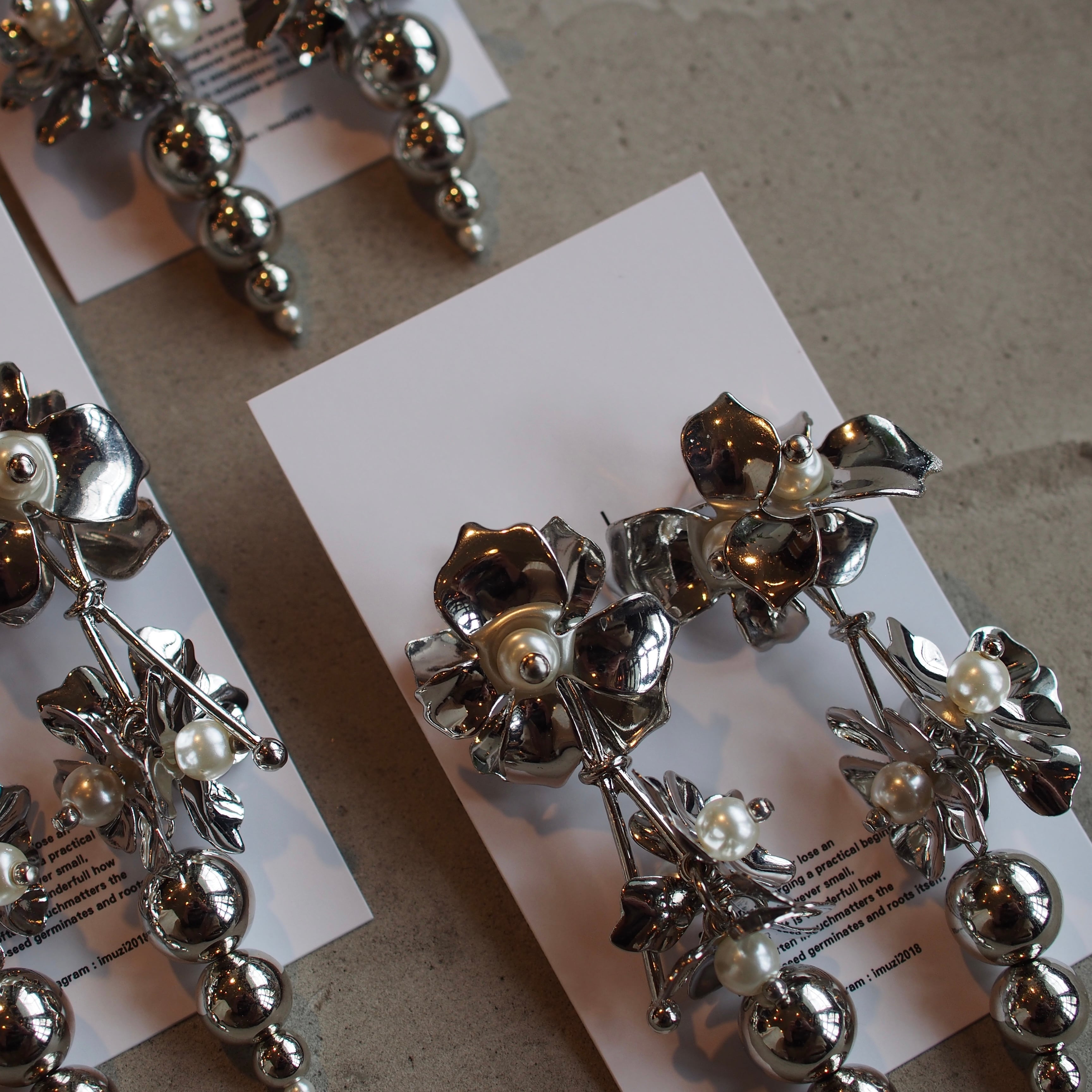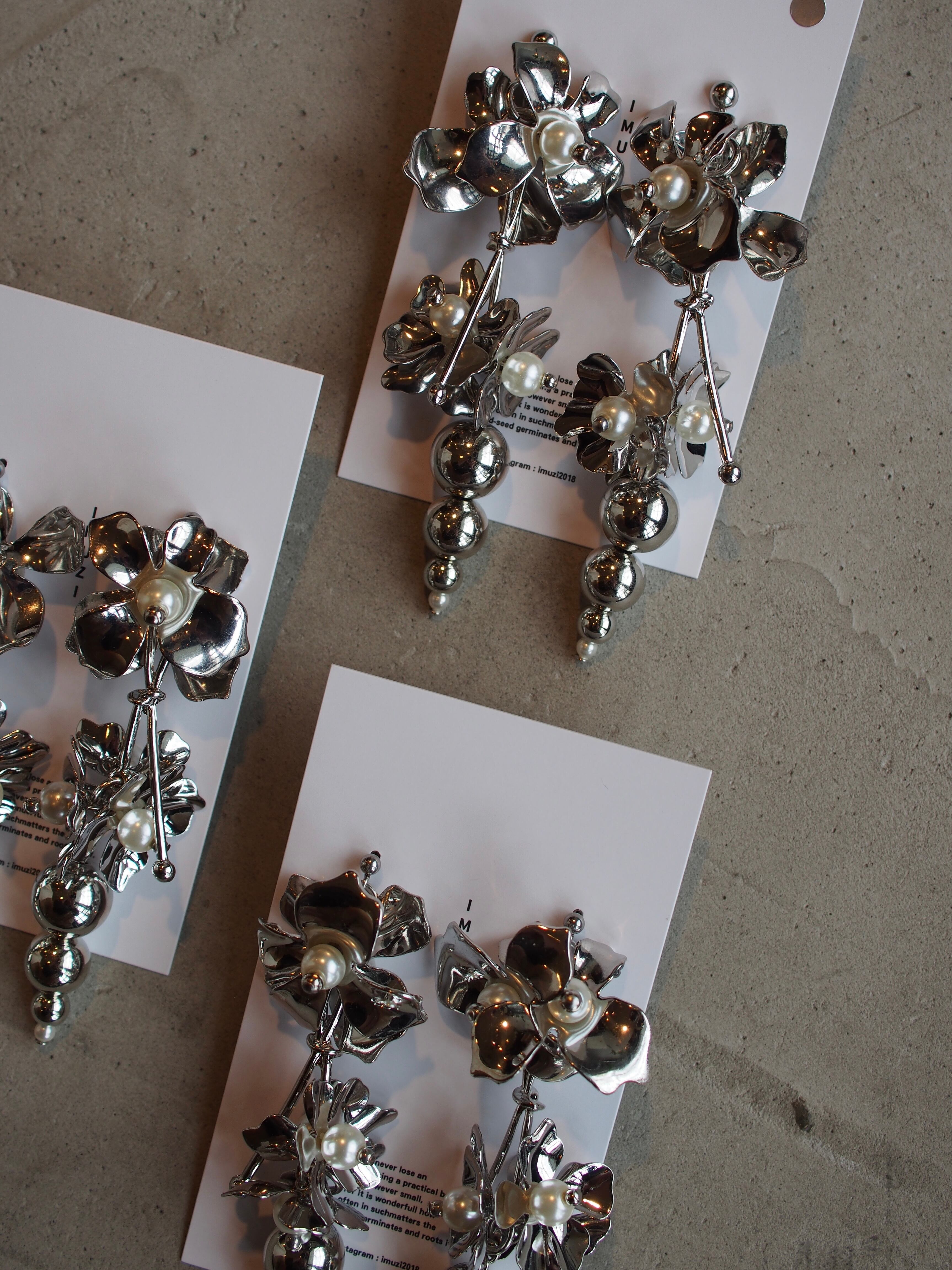 上部にあしらった大ぶりのシルバーフラワーが、